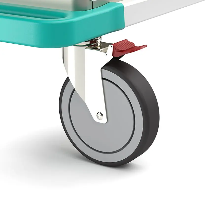 - Casters: 6″ Stainless steel casters with polyurethane wheels